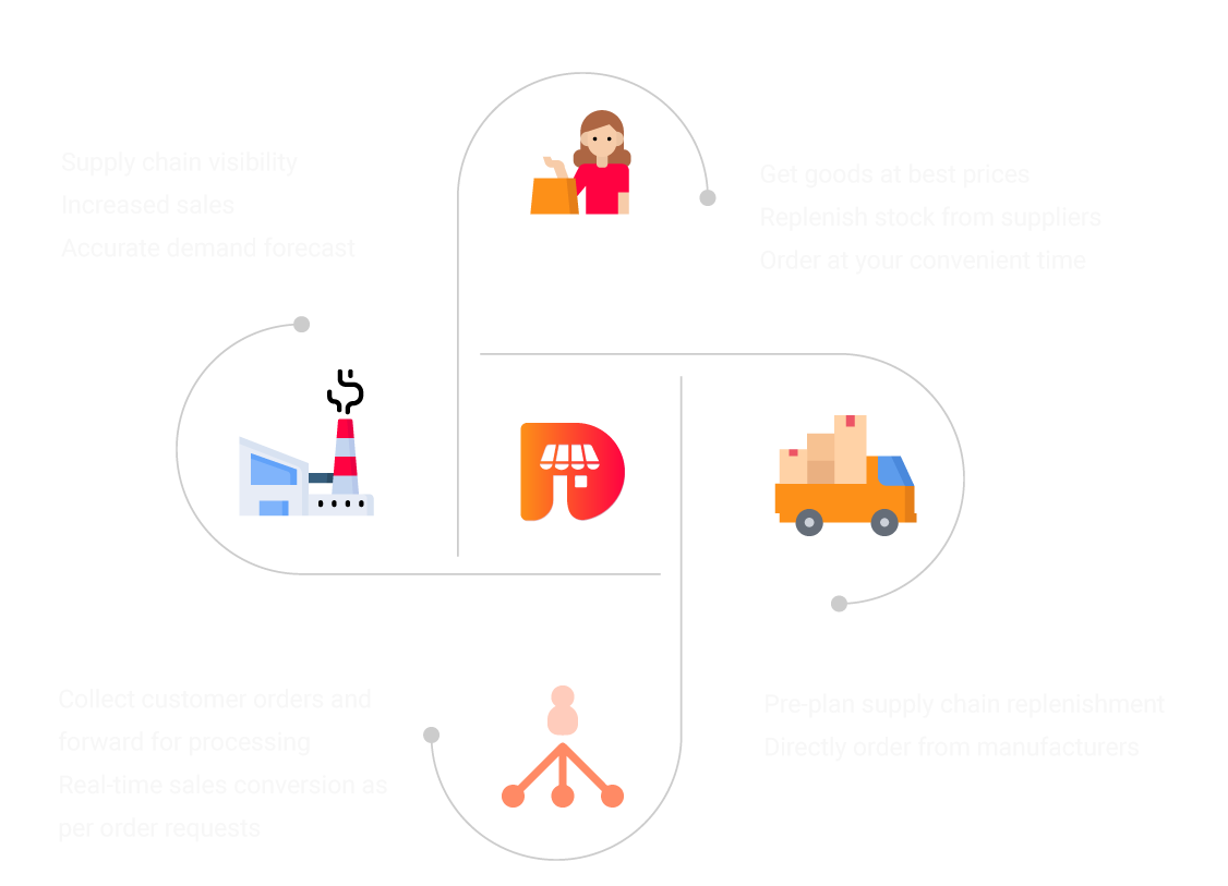 A B2B ordering platform that connects different key players in the distribution chain to their respective suppliers